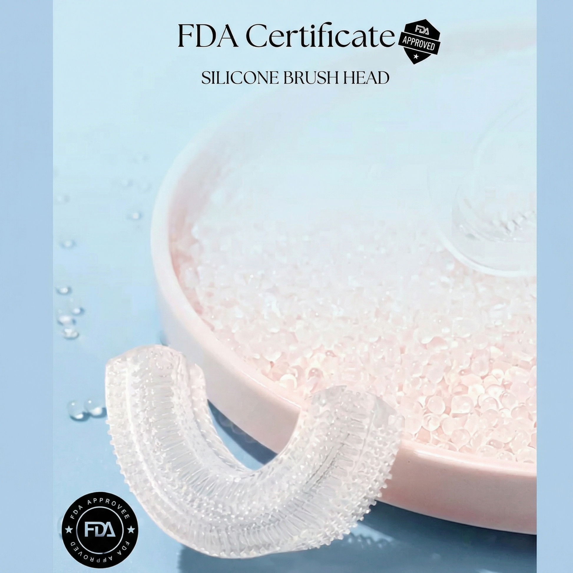 It is CE, FDA, and RoHS certified, and its soft silicone bristles protect sensitive gums from irritation.